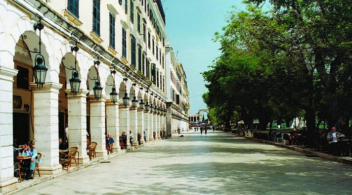 Η Κέρκυρα είναι ένα από τα βορειότερα και δυτικότερα νησιά της Ελλάδας και του Ιονίου Πελάγους. Βρίσκεται στην είσοδο της Αδριατικής Θάλασσας, κοντά στις Ηπειρωτικές ακτές. Οι βορειοανατολικές της ακτές πλησιάζουν αρκετά (περ. 2 χιλιόμετρα) τις ακτές των Αγίων Σαράντα της Αλβανίας. Είναι μέρος του ενιαίου δήμου της Κέρκυρας, ο οποίος περιλαμβάνει επίσης τα μικρότερα νησιά Οθωνοί, Ερεικούσσα και Μαθράκι.